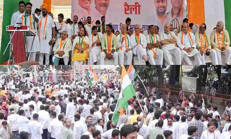 रायपुर दक्षिण विधानसभा उपचुनाव के लिए कांग्रेस प्रत्याशी आकाश शर्मा ने आज नामांकन भरा. शर्मा की नामांकन रैली के बहाने कांग्रेस ने अपनी ताकत दिखाई. रैली में पूर्व सीएम भूपेश बघेल, कांग्रेस अध्यक्ष दीपक बैज, नेता प्रतिपक्ष चरणदास महंत समेत कई दिग्गज नेता और बड़ी संख्या में कांग्रेसी शामिल हुए. नामांकन रैली से पहले गांधी मैदान में कांग्रेस की सभा हुई, जिसमें पूर्व सीएम भूपेश बघेल ने भाजपा सरकार पर हमला बोला.