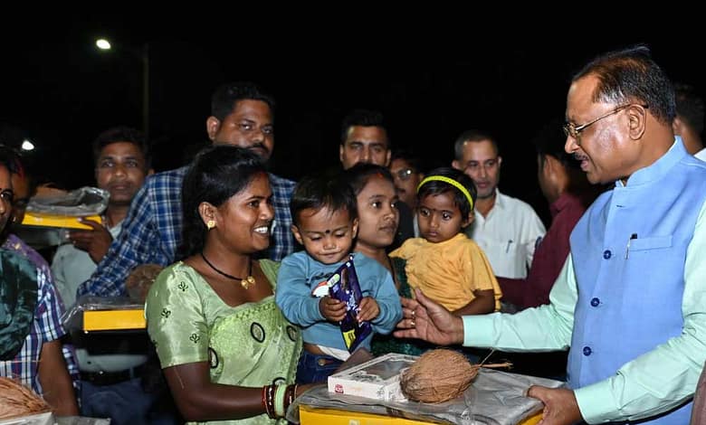 मुख्यमंत्री विष्णु देव साय ने नवा रायपुर में सफाई कर्मियों के साथ दीवाली की खुशियां मनाई और उन्हें अपनी ओर से मिठाई और उपहार दिए। इस मौके पर मुख्यमंत्री ने सफाई कर्मियों के बच्चों को बड़े अपनत्व और स्नेहिल भाव से दुलारा एवं उन्हें चॉकलेट प्रदान किए। इस दौरान उप मुख्यमंत्री अरूण साव, विधायक मोती लाल साहू उनके साथ थे।