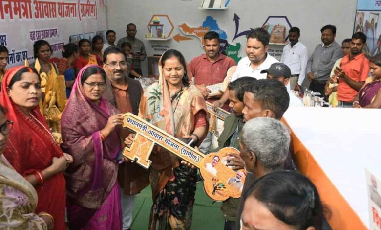 गौरतलब है कि 01 नवम्बर राज्य स्थापना दिवस के अवसर पर आज 05 नवम्बर को जिला मुख्यालय के कन्या उच्चतर माध्यमिक विद्यालय बलरामपुर के खेल मैदान में आयोजित राज्योत्सव कार्यक्रम में प्रदेश की महिला एवं बाल विकास मंत्री श्रीमती लक्ष्मी राजवाड़े पहुँची। कार्यक्रम के दौरान उन्होंने विभिन्न योजनाओं के तहत हितग्राहियों को सामग्री का वितरण किया। इसमें प्रधानमंत्री जनमन आवास योजना के अंतर्गत 04 पहाड़ी कोरवाओं को उनके पक्के आवास की चाबी दी। ज्ञातव्य है कि प्रधानमंत्री जनमन आवास योजना के माध्यम से पहाड़ी कोरवाओं को बेहतर और सुरक्षित जीवन देने का प्रयास जारी है, योजना से न केवल उन्हें पक्के आवास मिल रही है बल्कि बेहतर जीवन जीने के लिए प्रेरित कर सामाजिक एवं आर्थिक रूप से सुदृढ़ बनाने का प्रयास किया जा रहा है।