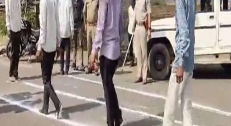 शराबियों की पहचान का नायाब तरीका: पुलिस ने चूने की लाइन पर करवाया ‘रोड वॉक’