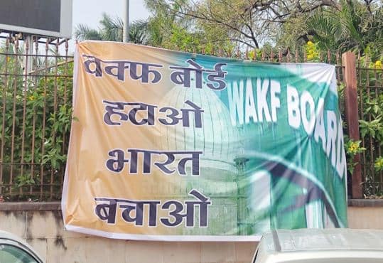 भोपाल में लगे वक्फ बोर्ड वक्फ बोर्ड हटाओ भारत बचाओ के लगे पोस्टर