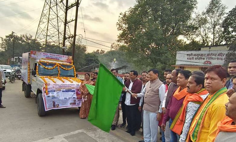 रायपुर : वाणिज्य उद्योग और श्रम मंत्री लखन लाल देवांगन ने निक्षय निरामय छत्तीसगढ़ अभियान के तहत प्रचार प्रसार रथ को हरी झंडी दिखाकर रवाना किया।