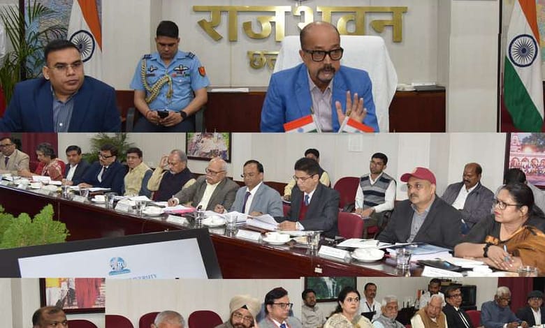 रायपुर : राज्यपाल और कुलाध्यक्ष रमेन डेका ने आज सभी निजी विश्वविद्यालयों की समीक्षा बैठक लेकर उनकी शैक्षणिक गतिविधियों, नई शिक्षा नीति के क्रियान्वयन व अन्य कार्यों की समीक्षा की। राज्यपाल ने सभी विश्वविद्यालयों को निर्देशित किया कि नवाचार, अनुसंधान और स्टार्टअप पर विशेष ध्यान दें। उन्होंने विश्वविद्यालयों को विश्वविद्यालय अनुदान आयोग के मापदंडों एवं नियमों के अनुरूप कार्य संचालन के निर्देश दिये।