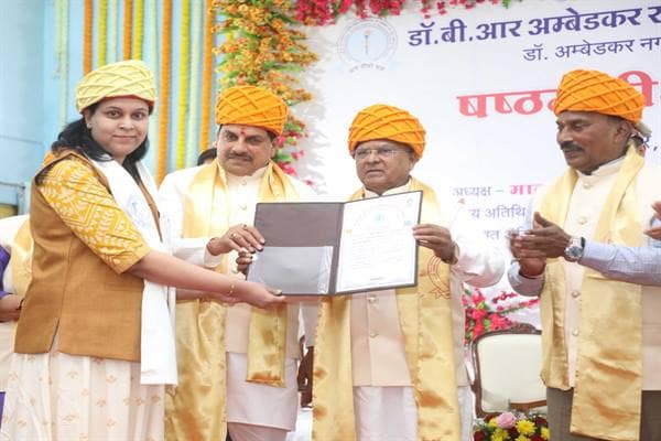 दीक्षांत समारोह में संस्थान के 16 शोधार्थियों को पीएचडी की उपाधि प्रदान की गई। अम्डेकर विश्वविद्यालय के द्वारा विगत 5 वर्षों में 100 से अधिक शोधार्थियों ने पीएचडी की उपाधि प्राप्त की है। वहीं बीते सत्र में विश्वविद्यालय से 851 विद्यार्थियों ने डिग्री हासिल की है। इसमें से पीएचडी करने वाले विद्यार्थियों को मंच पर डिग्री प्रदान की गई। आरंभ में अतिथियों द्वारा माँ सरस्वती, भगवान बुद्ध और बाबासाहेब की प्रतिमाओं पर माल्यार्पण और दीप प्रज्ज्वलित कर समारोह का शुभारंभ किया। स्वागत उद्बोधन विश्वविद्यालय के कुलगुरु रामलाल अत्राम ने दिया। आभार कुलसचिव ने माना।