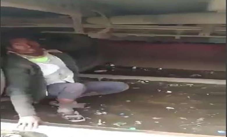 रेलवे कर्मचारियों यह देख होश उड़ गये।कर्मचारियों उसे वहां से निकाला।पूछताछ के दौरान शख्स ने बताया कि टिकट के लिए पैसा नही था।इस लिए सफर के लिए यह खतरनाक रास्ता अपनाना पड़ा