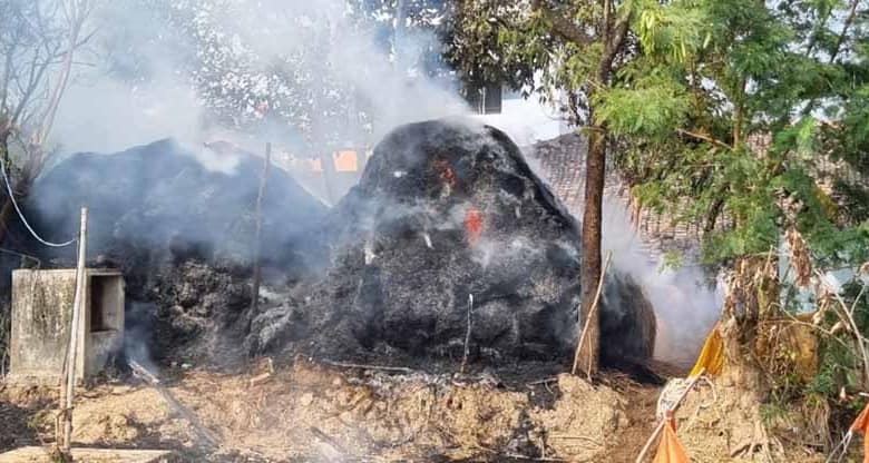 जिले के नगर पंचायत कोपरा पैरी नगर में रविवार को एक बड़ा हादसा होने से टल गया. किराना व्यवसायी महेश साहू के घर के बाड़ी में रखे पैरावट में अचानक आग लग गई. आग की लपटें इतनी तेज थी कि आसपास के घरों तक पहुंचने का खतरा था. हालांकि, समाजसेवी की सूझबूझ और पुलिस-दमकल विभाग की तत्परता से स्थिति को नियंत्रित कर लिया गया.