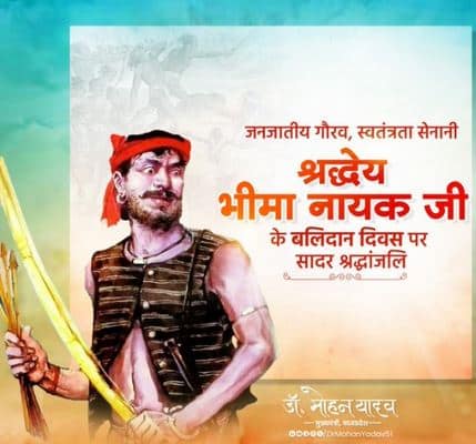 मुख्यमंत्री डॉ. यादव ने प्रदेश के गौरव भीमा नायक के 148वें बलिदान दिवस पर, बड़वानी जिले के ग्राम धाबा बावड़ी में हुई श्रंद्धाजलि सभा कार्यक्रम के लिए जारी संदेश में कहा कि भीमा नायक प्रदेश के गौरवशाली इतिहास का अभिन्न अंग हैं। आजादी की लड़ाई में भीमा नायक ने जनजातियों को अंग्रेजों के विरुद्ध संगठित किया। सुरसी बाई भील, भीमा नायक की माता जी थी, उन्होंने ही भीमा नायक और जनजातीय समाज को अंग्रेजों के विरुद्ध एकजुट करने की प्रेरणा दी। शहीद भीमा नायक का कार्य क्षेत्र बड़वानी रियासत से महाराष्ट्र के खानदेश तक फैला था। तात्या टोपे के निमाड़ आगमन पर भीमा नायक ने उनसे मुलाकात की थी। अंबापानी युद्ध में उनकी महत्वपूर्ण भूमिका रही। भीमा नायक ने भीलों के स्वतंत्रता प्रिय स्वाभिमान को बनाए रखा, उन्होंने अंतिम क्षणों तक कोई समझौता या समर्पण नहीं किया। सलोदा नामक स्थान पर अंग्रेजों से युद्ध के दौरान धोखे से उन्हें बंदी बनाया गया। मंडलेश्वर किले में बंदी रखने के बाद उन्हें कालापानी कैद में डाल दिया गया। लम्बी प्रताड़ना सहने के बाद वे जेल में ही वीरगति को प्राप्त हुए।