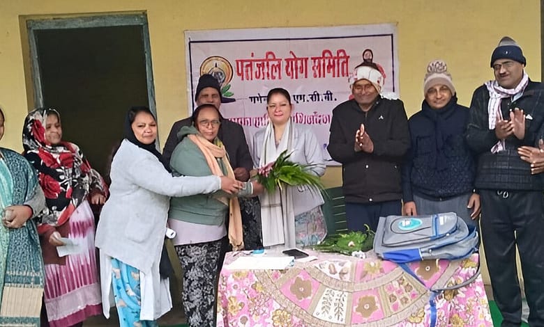 योग, प्राणायाम के साथ पारस्परिक सहयोग, पर्यावरण जागरूकता एवं भारतीय संस्कृति के प्रति आदर भाव जगाने के लिए समर्पित -“पतंजलि योग समिति”द्वारा नए वर्ष की पहले प्रभात बेला में स्वास्थ्य कल्याण ,शिक्षा एवं सेवाओं के लिए निशुल्क हेल्थ चेकअप कैंप का आयोजन हेल्थ वेलनेस इवोल्यूशन की सुप्रसिद्ध चिकित्सक किरण वर्मा की उपस्थिति में किया गया। पतंजलि योग समिति की ओर से वरिष्ठ योग प्रशिक्षक सतीश उपाध्याय, सामुदायिक स्वास्थ्य केंद्र के सहायक नेत्र अधिकारी आर डी दीवान, एवं ईरा कर के द्वारा वेलनेस कोच एवं मिशन स्वास्थ्य परिवार की चिकित्सक किरण वर्मा का पुष्पगुच्छ द्वारा स्वागत किया गया।