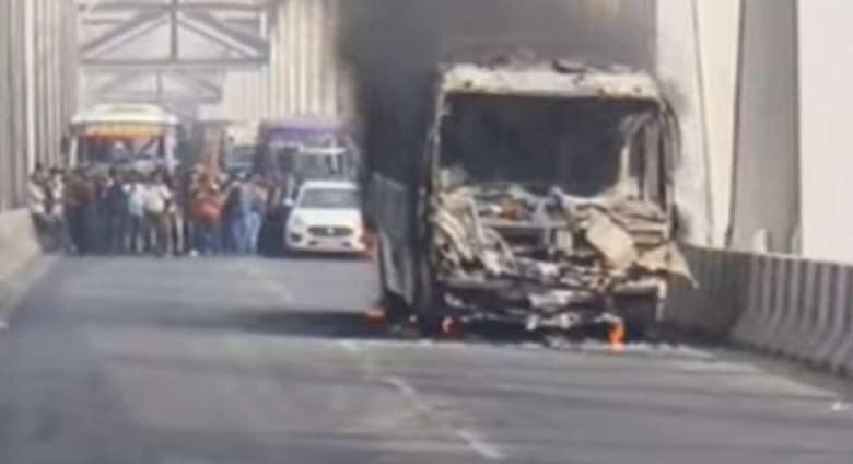पटना के महात्मा गांधी सेतु पर बस में लगी भीषण आग, यात्रियों ने कूदकर बचाई जान