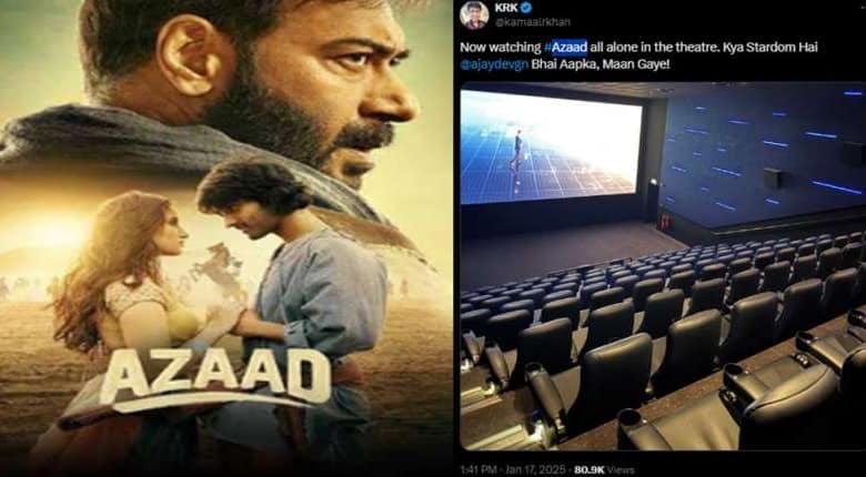 फिल्म ‘आजाद’ की रिलीज़ पर केआरके ने शेयर की खाली थियेटर की फोटो, पहले दिन 1.5 करोड़ की कमाई