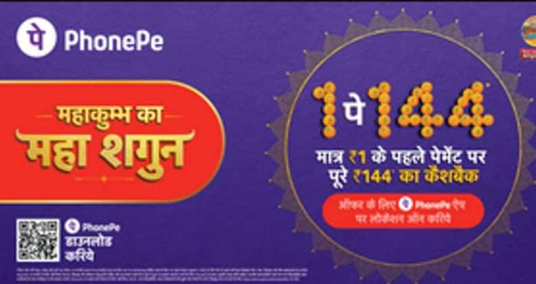 फोन-पे ने महाकुंभ में चलाया अभियान, 144 रुपए का फ्लैट कैशबैक देने की घोषणा