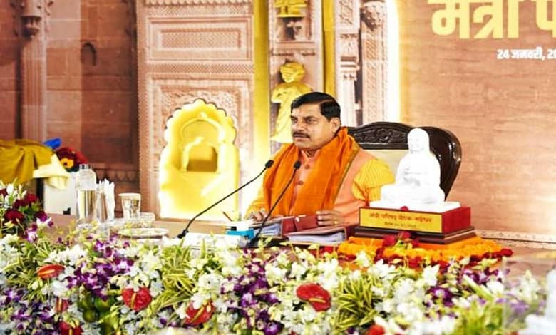 भोपाल: मध्य प्रदेश की डॉ. मोहन यादव ने शुक्रवार को लोकमाता देवी अहिल्या बाई होल्कर की नगरी महेश्वर में हुई कैबिनेट बैठक में ऐतिहासिक फैसला लिया है. मध्य प्रदेश की डॉ. मोहन यादव सरकार ने खरगोन के महेश्वर में 17 धार्मिक नगरों में शराब पर प्रतिबंध लगाने का फैसला लिया है. इसके तहत अब 1 अप्रैल से प्रदेश के 17 धार्मिक नगरों में शराब की दुकानें बंद हो जाएंगी. वहीं विशेष परिस्थितियों में मंत्री अपने विभाग में तबादले कर सकेंगे. इसके साथ ही कैबिनेट ने नारी सशक्तिकरण मिशन को मंजूरी दी है. कैबिनेट बैठक की शुरुआत वंदे मातरम गीत से हुई. कैबिनेट बैठक लोकमाता देवी अहिल्याबाई होल्कर को समर्पित की गई है. मुख्यमंत्री के सामने टेबल पर अहिल्या माता की प्रतिमा रखी गई. कैबिनेट से पहले मुख्यमंत्री डॉ. मोहन यादव ने अहिल्या घाट पर मंत्रियों के साथ नर्मदा पूजन किया।
