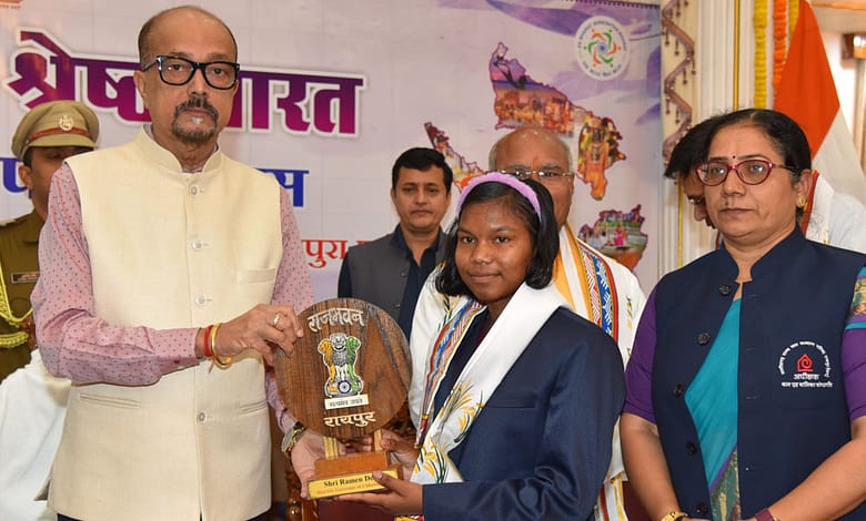 राज्यपाल रमेन डेका से आज यहां राजभवन में राष्ट्रीय बाल पुरूस्कार से सम्मानित बालिका सुहेमवती नाग को प्रशस्ति पत्र और स्मृति चिन्ह देकर उसकी हौसला अफजाई की। उन्होंने कोंण्डागांव जिले की बेटी को राष्ट्रपति श्रीमती द्रौपदी मुर्मु द्वारा हाल ही में प्रधानमंत्री राष्ट्रीय बाल पुरूस्कार से सम्मानित किए जाने पर विशेष रूप से राजभवन आमंत्रित किया था। उनके साथ कोंडागांव बालिका गृह की अधीक्षक श्रीमती मणि शर्मा भी उपस्थित थी।