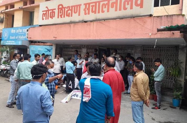 उज्जैन में स्कूल संचालकों ने की नारेबाजी