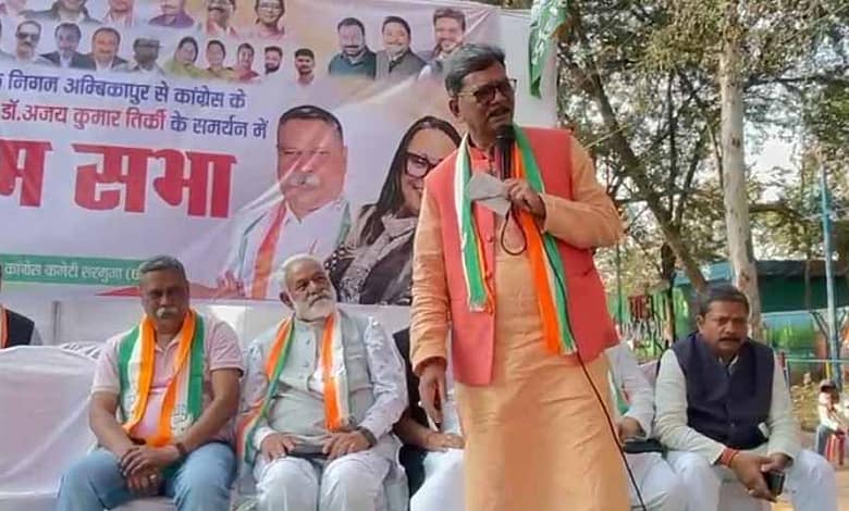 नगरीय निकाय चुनाव में महापौर प्रत्याशी के प्रचार के लिए अंबिकापुर पहुंचे डॉ. चरणदास महंत ने टीएस सिंहदेव की मौजूदगी में आम सभा को सम्बोधित किया. इसके बाद मीडिया से चर्चा में नेता प्रतिपक्ष डॉ. महंत ने कहा कि अब हम सब लोग साथ रहेंगे. महाराज (टीएस सिंहदेव) की अगुवाई में चुनाव लड़ेंगे. निश्चित रूप से (अगली बार) हमारी सरकार बनेगी.